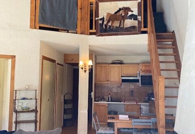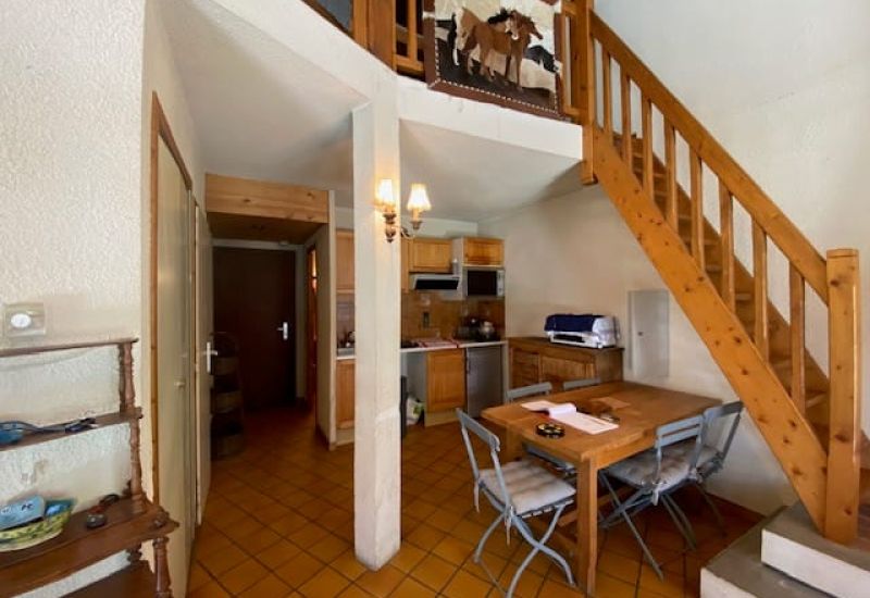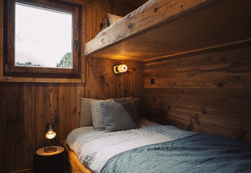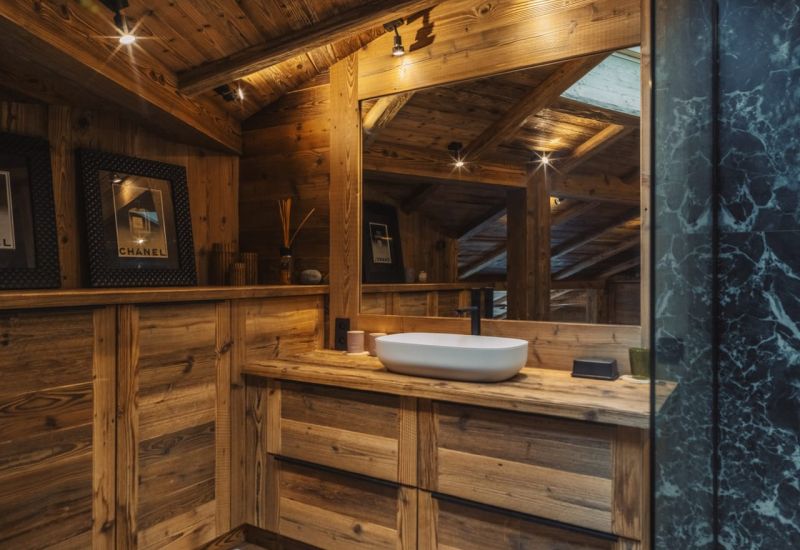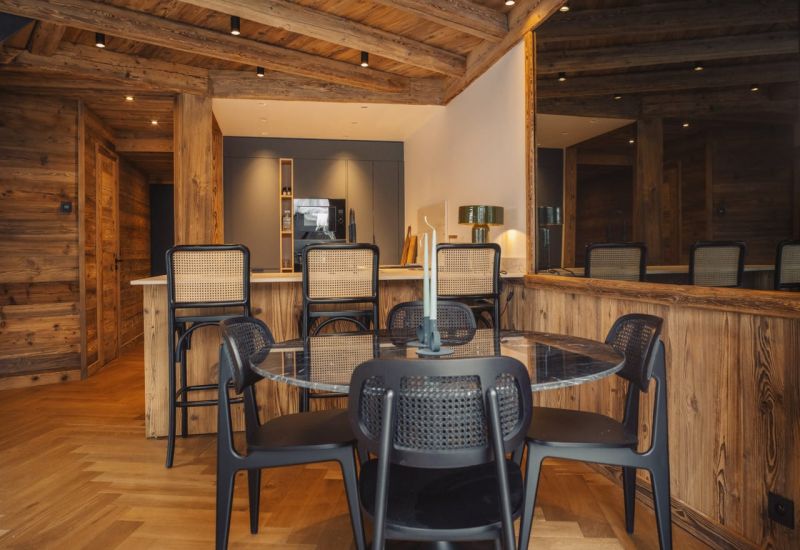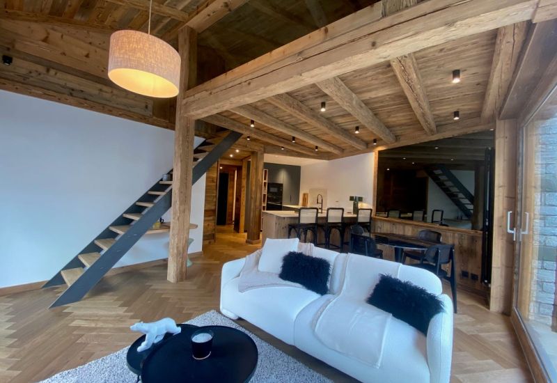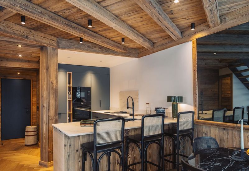 Only old wood will do! The owners had a strong desire to rediscover the authenticity of a true traditional chalet, while enjoying contemporary comfort. We suggested a more refined and elegant parquet flooring by opting for broken oak sticks. The entire apartment underwent a complete renovation, including insulation, plumbing, and electricity. The skilled carpenters played a crucial role, as everything was custom-made to optimize the spaces in this originally 52-square-meter apartment with high ceilings. This allowed us to create a mezzanine for the master suite. All spaces were optimized to create maximum storage, of course, custom-made.