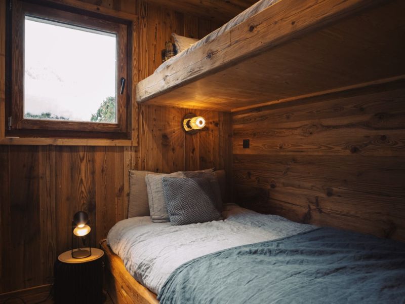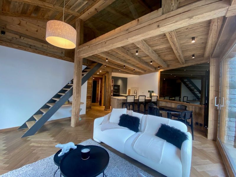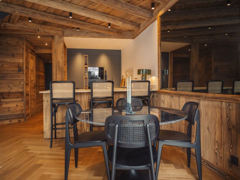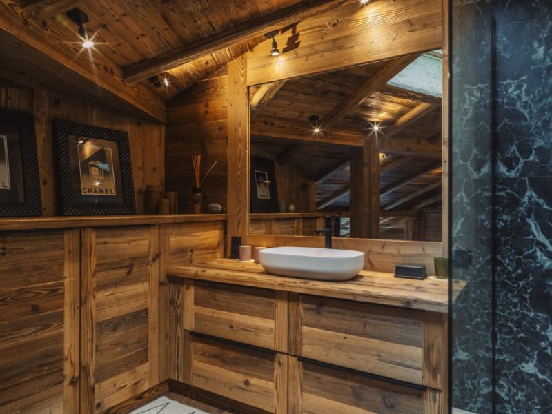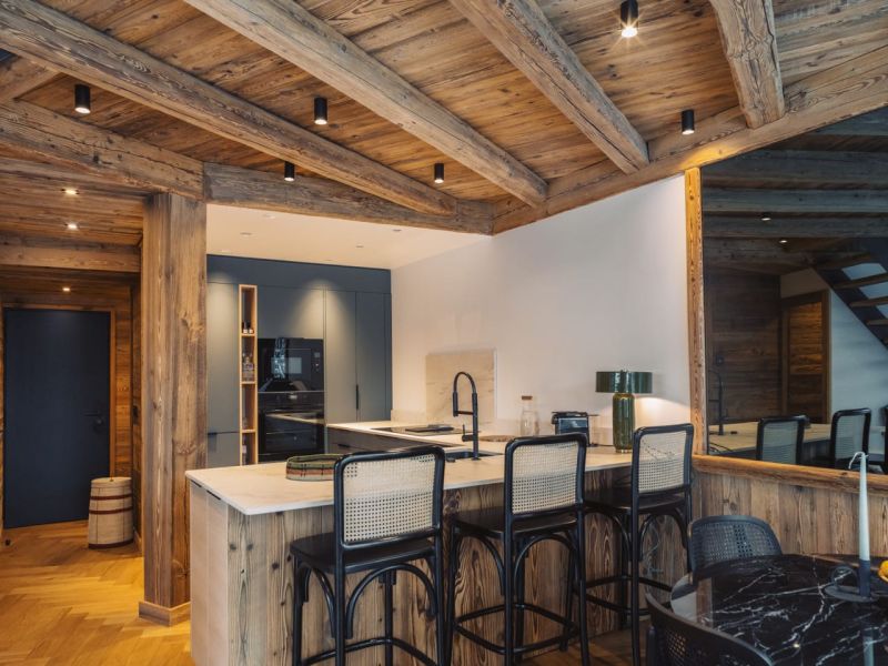 Only old wood will do! The owners had a strong desire to rediscover the authenticity of a true traditional chalet, while enjoying contemporary comfort. We suggested a more refined and elegant parquet flooring by opting for broken oak sticks. The entire apartment underwent a complete renovation, including insulation, plumbing, and electricity. The skilled carpenters played a crucial role, as everything was custom-made to optimize the spaces in this originally 52-square-meter apartment with high ceilings. This allowed us to create a mezzanine for the master suite. All spaces were optimized to create maximum storage, of course, custom-made.