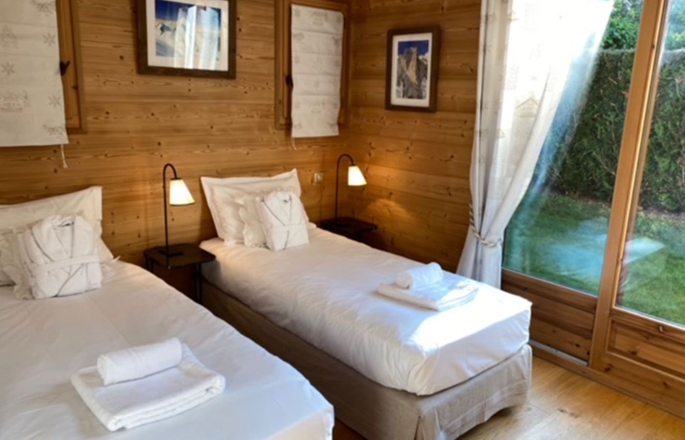 FARNIENTE se compose d’une entrée avec placards, d’un local avec chauffe chaussures de ski, d’une chambre avec 2 lits simples vue sur les Drus, d’une chambre avec lit double vue Mont-Blanc, d’une chambre parentale en suite avec WC, bidet et bain, toutes équipées de TV LCD  et de rangements. 1 salle de douches indépendante ainsi qu’un WC séparé.