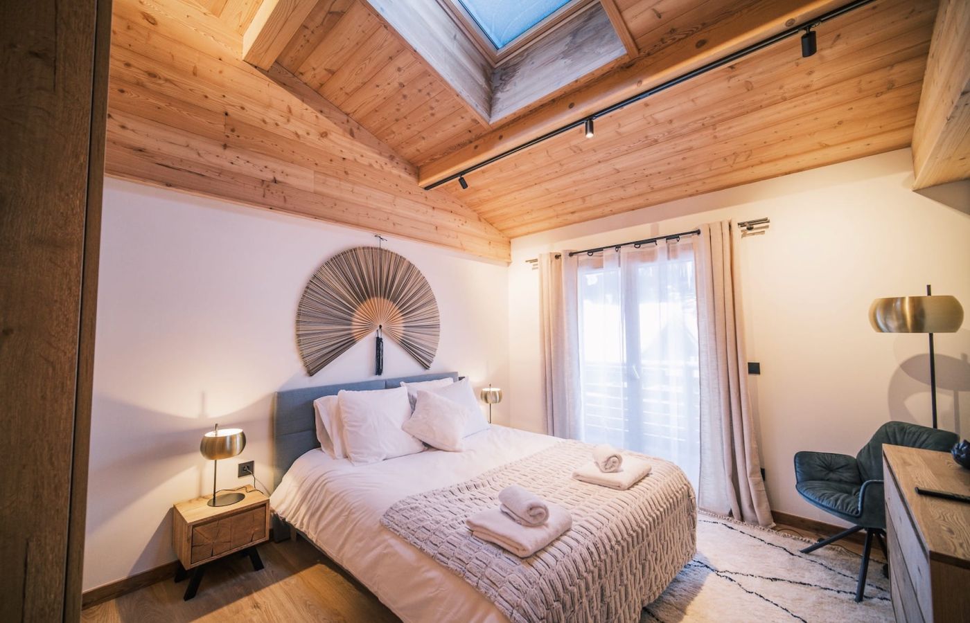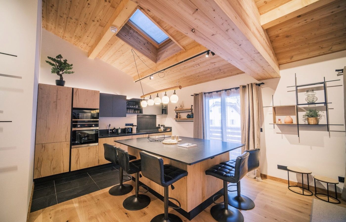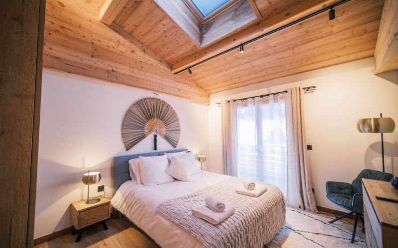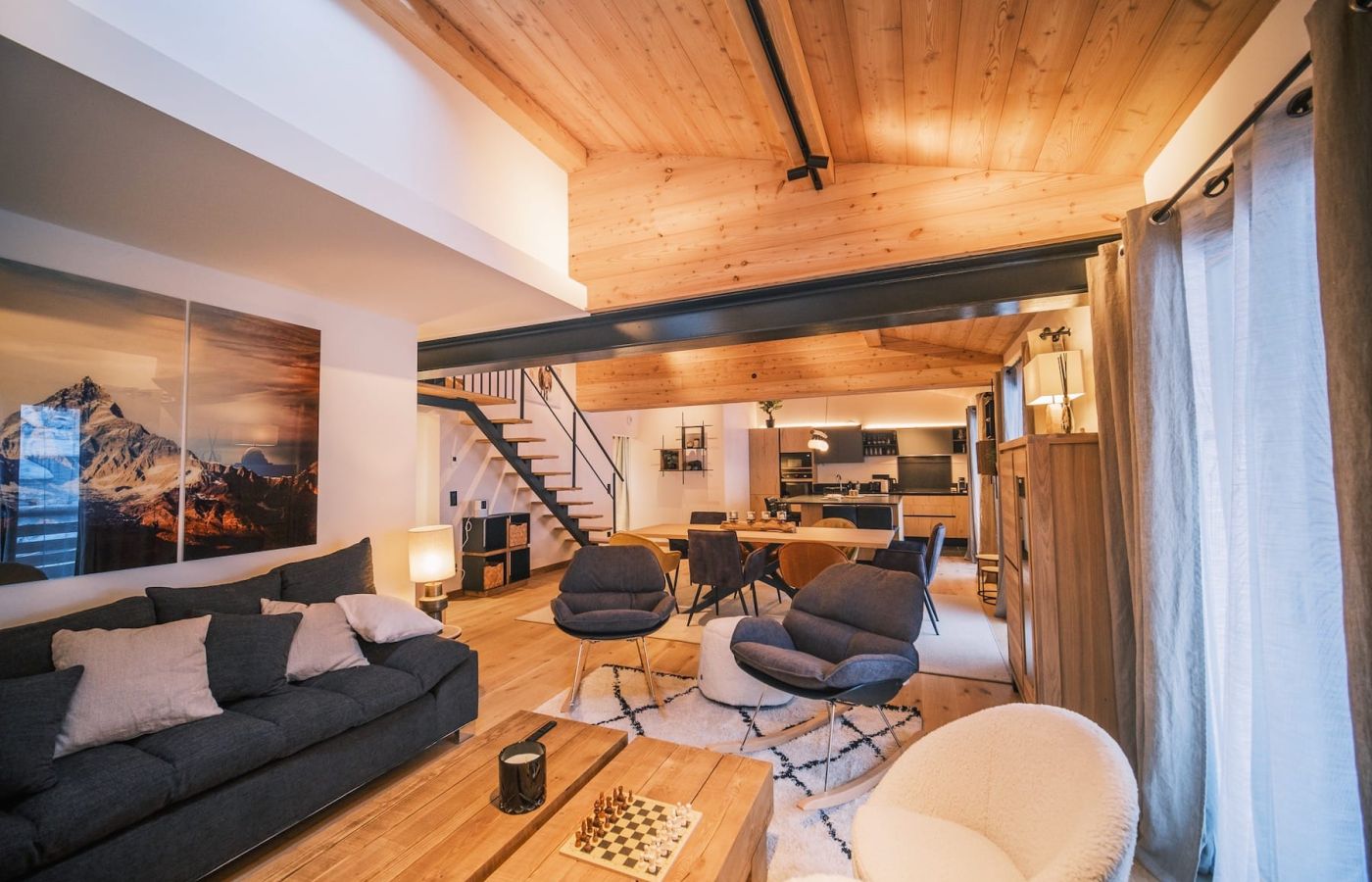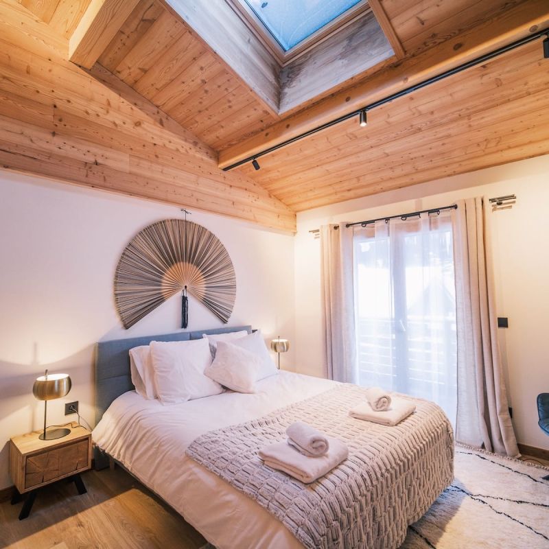 Appartement neuf, au dernier étage dans une résidence entièrement rénovée avec ascenseur, sur deux niveaux à louer à la semaine ou à la saison complète, en plein centre des Houches.