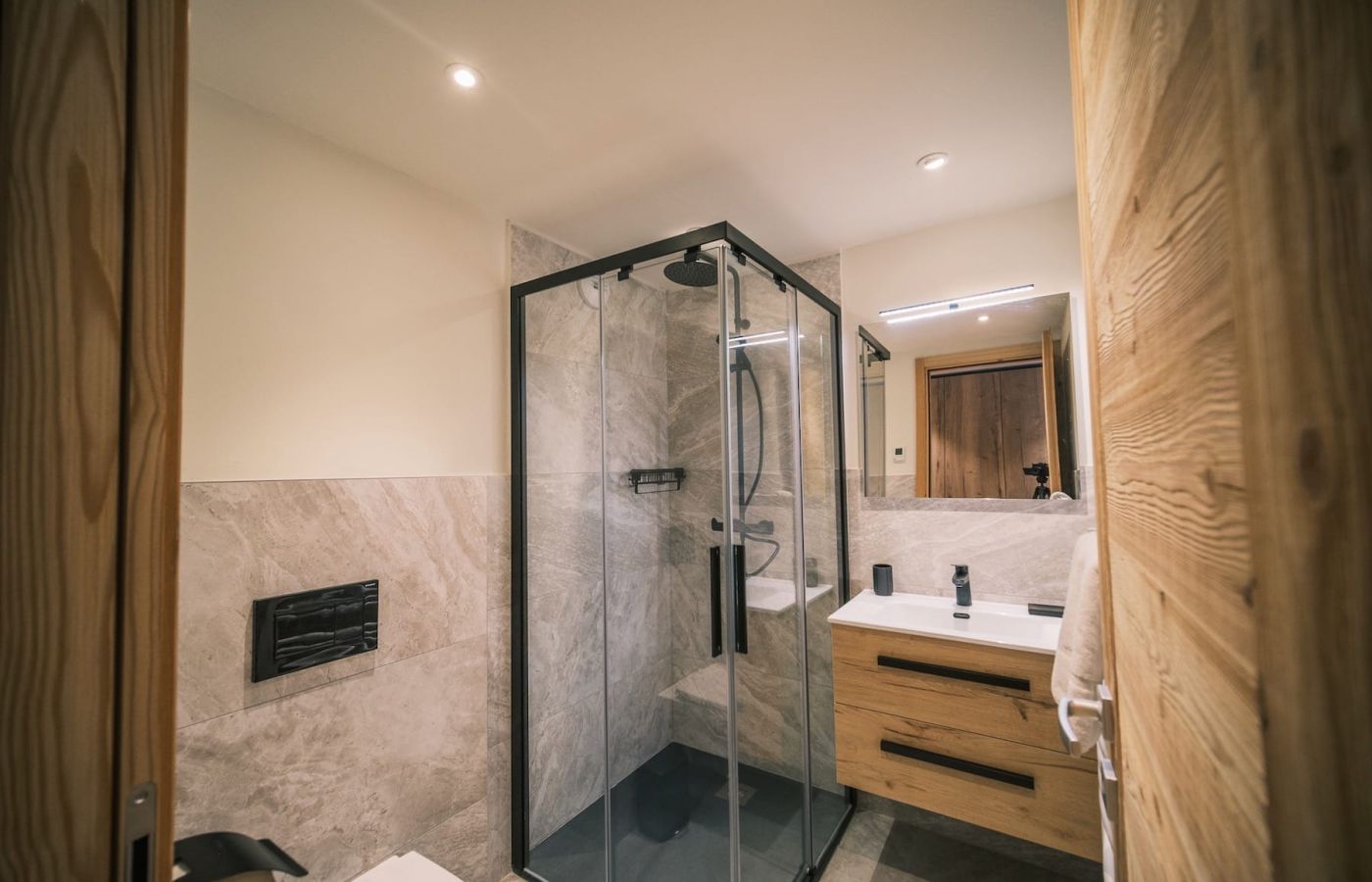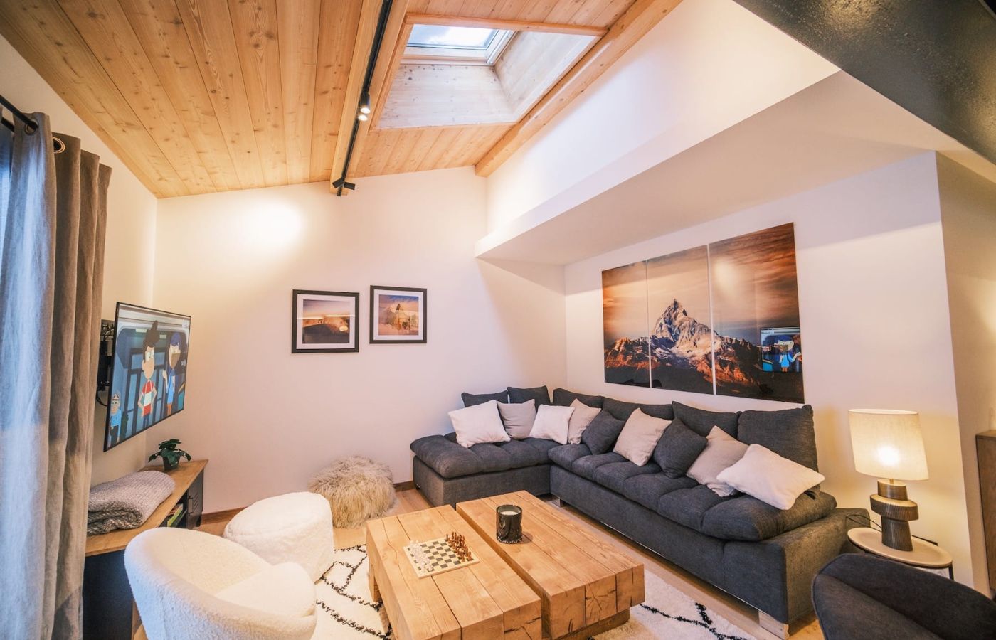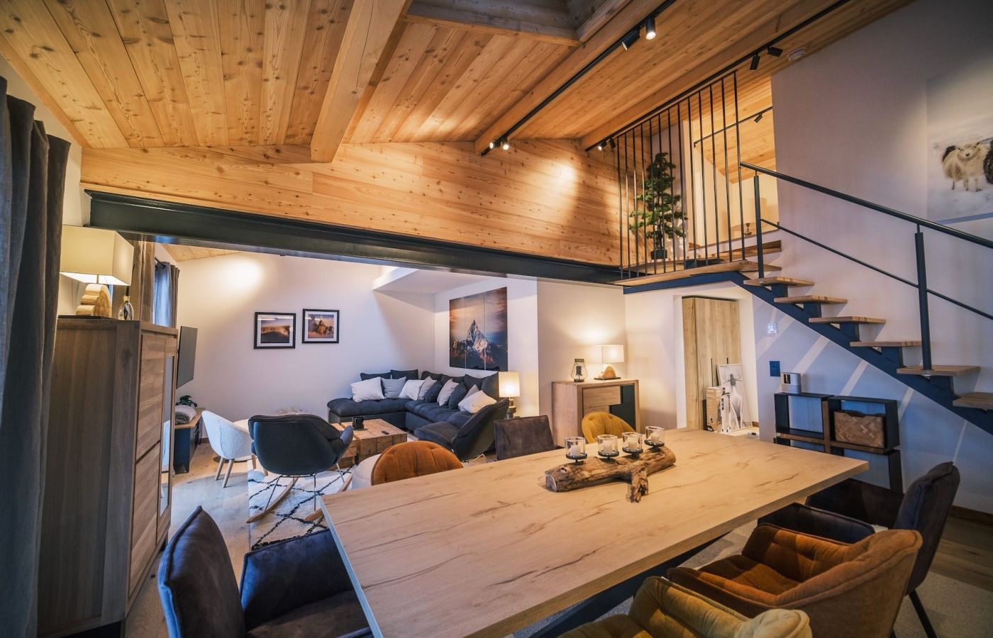 Appartement neuf, au dernier étage dans une résidence entièrement rénovée avec ascenseur, sur deux niveaux à louer à la semaine ou à la saison complète, en plein centre des Houches.