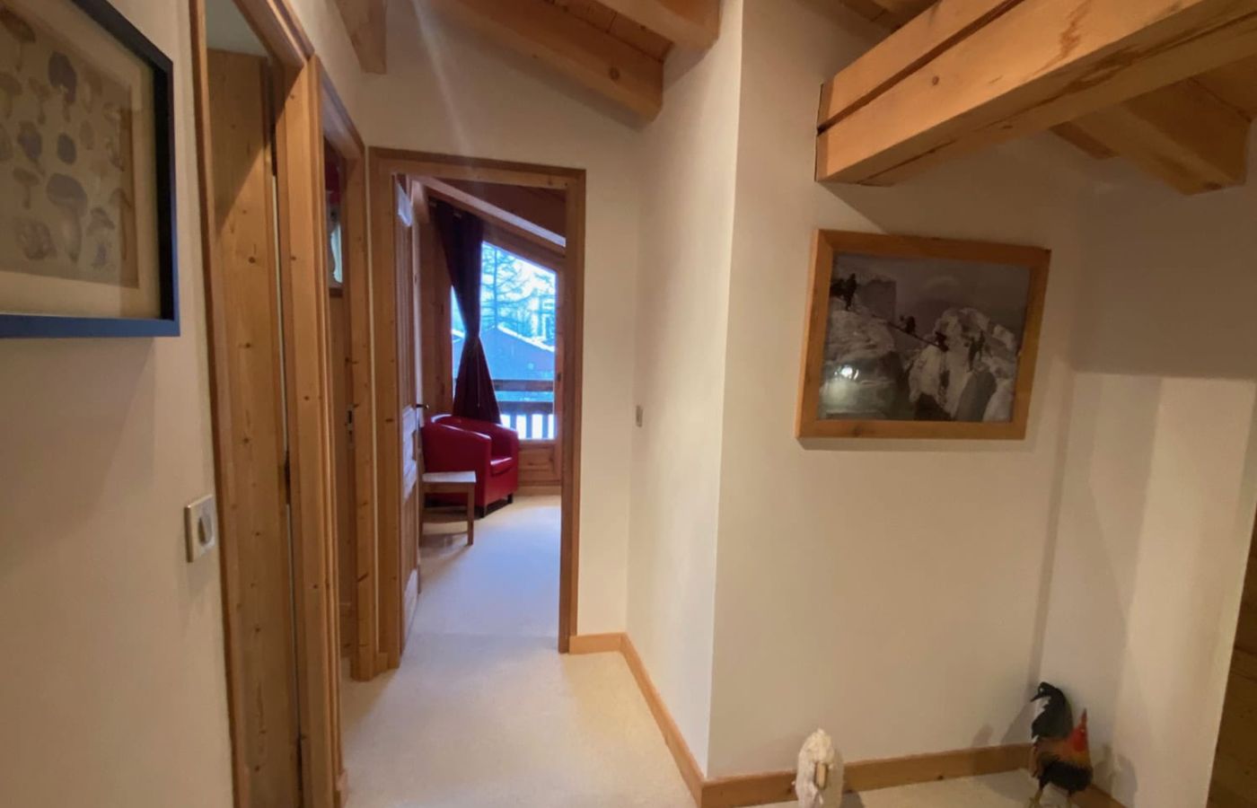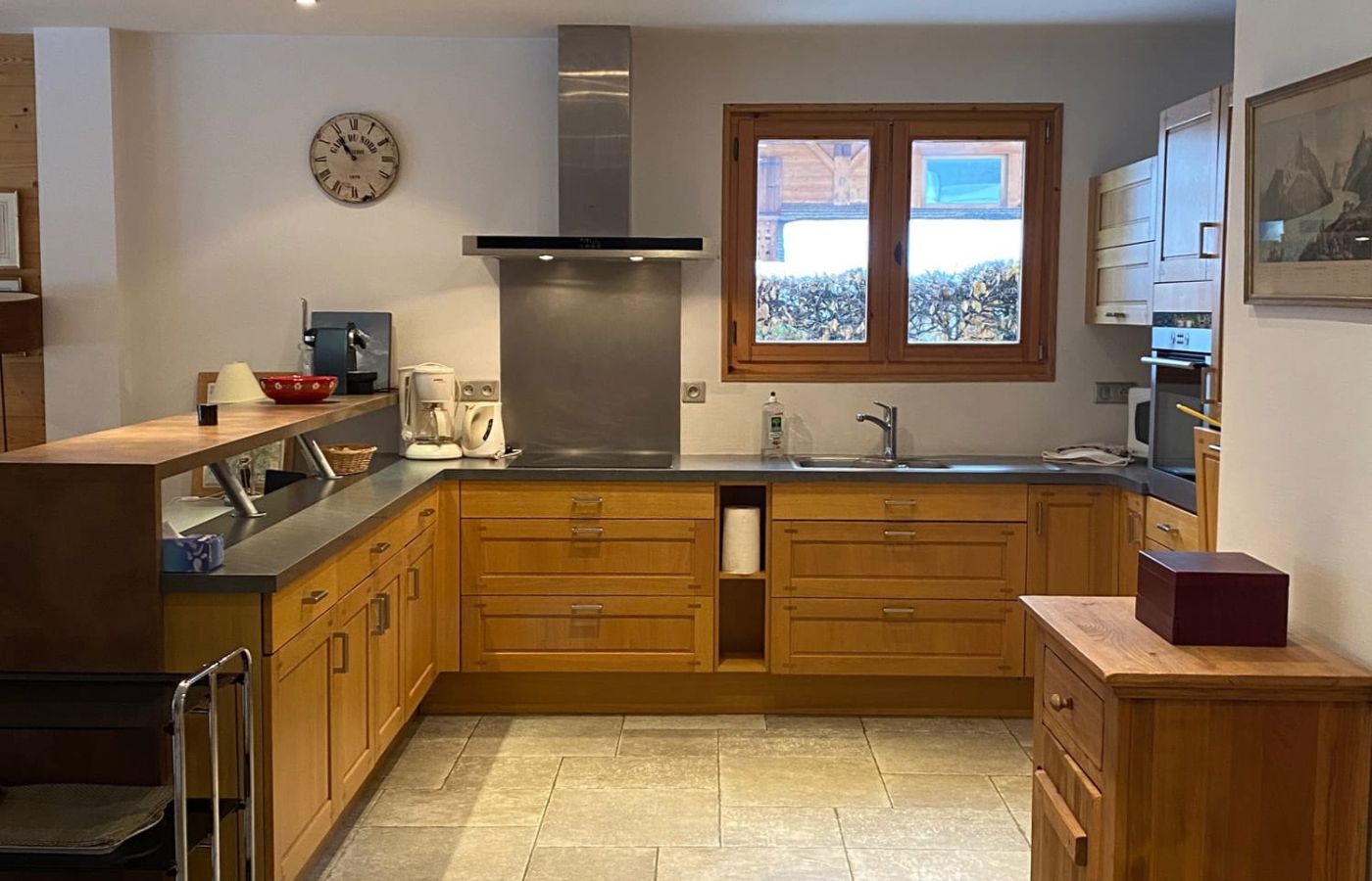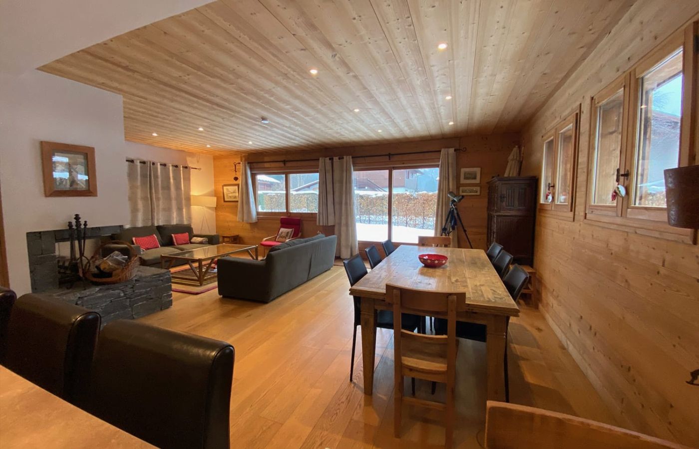 Il y a de belles ouvertures aussi vers l’extérieur et donc sur la terrasse et le petit jardin, vue sur le Mont-Blanc, les Drus, le Brévent.