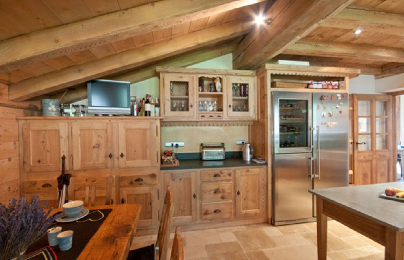 Ce chalet de 269,19 m2 dont 34,32 m2 de double garage, est situé aux Praz de Chamonix dans un quartier résidentiel et peut accueillir jusqu’à 10 personnes + 2 autres personnes dans le mazot. Le chalet offre de grands espaces de repos et de vie. Les matériaux et la réalisation sont de très bonne qualité.